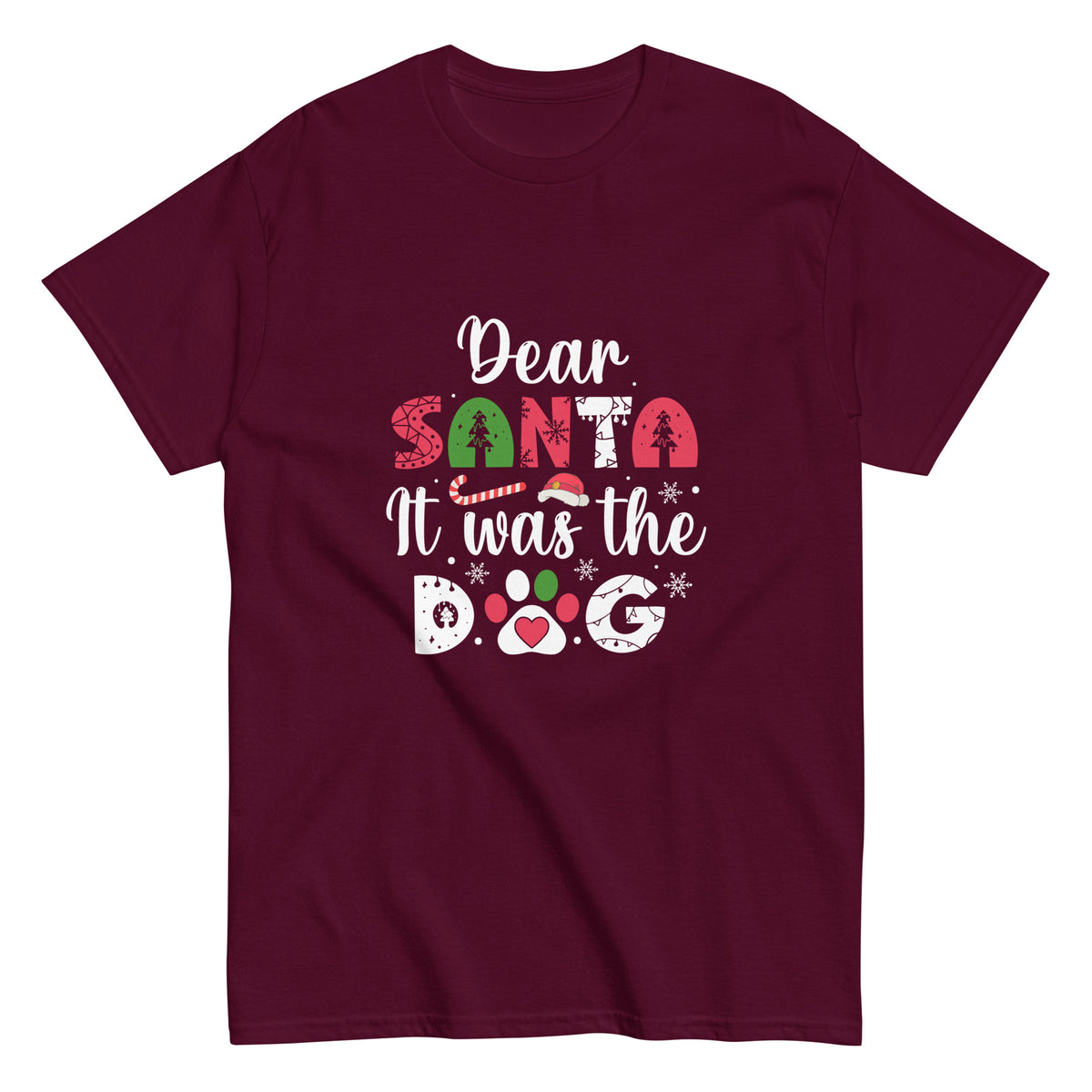 “Dear Santa, It Was the Dog” Unisex Tee - Maroon / S
